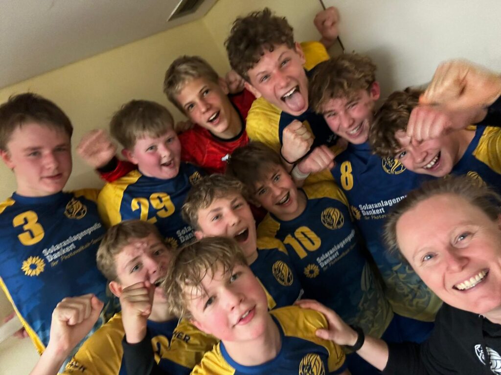 Die Jungs feiern den 4. Sieg im 4. Spiel