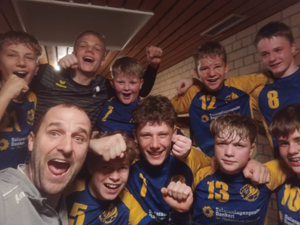 Die Jungs feiern den 4. Sieg im 4. Spiel
