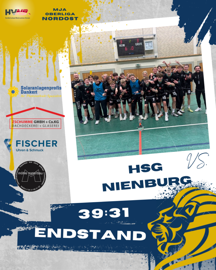 Am Dienstag Abend zu später Stunde empfingen wir die Jungs aus Nienburg bei uns im HEG. Nach dem Dämpfer gegen Heidmark wollten wir uns wieder unser Selbstvertrauen zurückholen. Schon beim Aufwärmen war die Stimmung wieder so gut wie zuvor und so gingen wir auch ins Spiel. Schnell konnten wir uns absetzen, indem wir vorne gute Lösungen fanden und Nienburg hinten zu Fehlern zwingen konnten. Wir gingen mit 20:15 in die Halbzeit. Auch in der zweiten Halbzeit lief es sehr gut weiter. Wir konnten viel wechseln und uns noch weiter absetzen auf ein am Ende souveränen 39:31 Sieg einfahren. Damit sind wir jetzt 2. in der Tabelle und haben Schiffdorf hinter uns gelassen. Ein großes Dankeschön gilt noch Florian aus der Wittinger B-Jugend, der uns im Tor unterstützt hat und direkt mal abgerissen hat🔥🔥