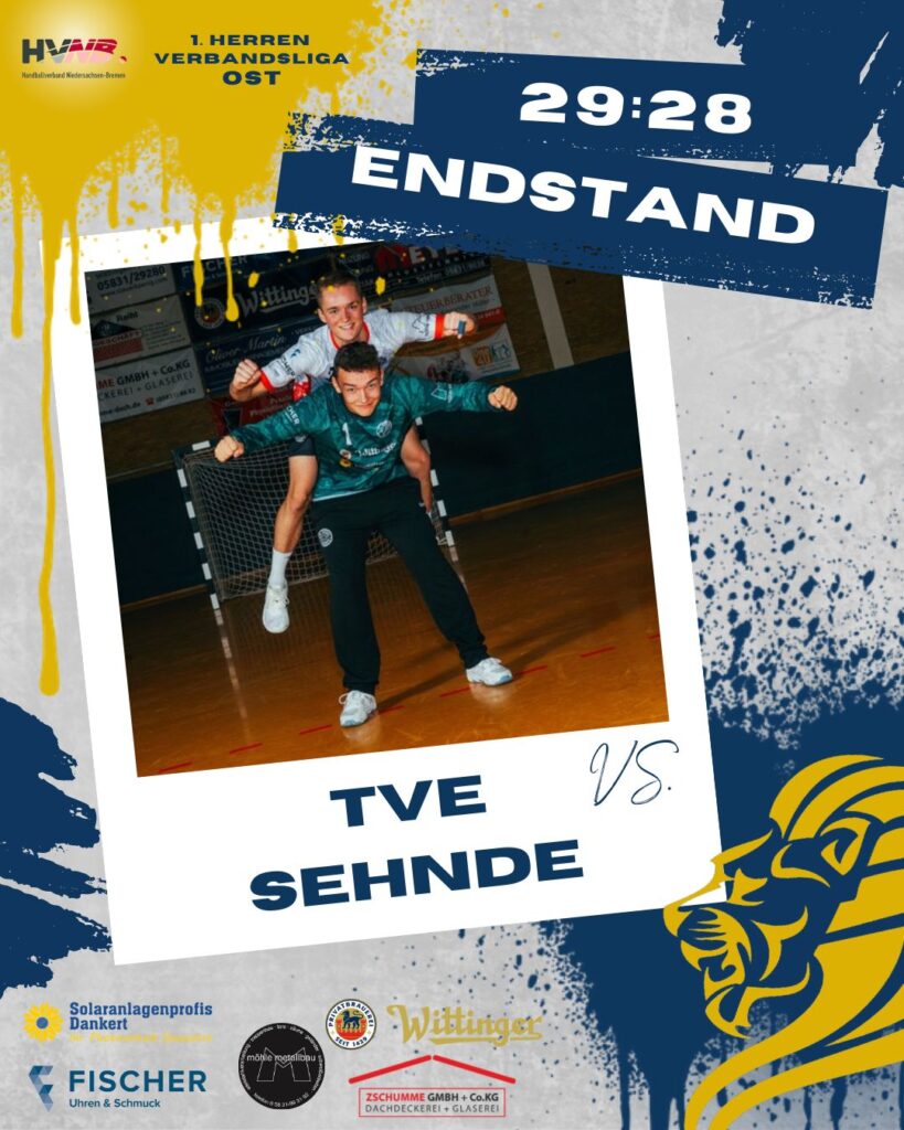 Minute beim Spielstand von 2:5 zum ersten Mal auf 3 Tore absetzen konnten. Diese Führung hielt jedoch nicht lange und binnen weiterer 8 Minuten drehten wir das Spiel und lagen selber mit 4 Toren Vorsprung vorne. Im letzten Drittel der ersten Halbzeit konnten wir die Führung verwalten und wechselten beim Stand von 16:14 die Seiten. Im Angriff fanden wir immer wieder gute Lösungen, wenngleich uns in der Defensive stellenweise die nötige Kompaktheit fehlte. In der zweiten Hälfte konnten wir die Führung weiterhin behaupten, schafften es aber nicht, uns vorentscheidend abzusetzen. Somit machten wir es nochmal richtig spannend und Sehnde glich nach einer 3 Tore Führung unsererseits in der 59. zum 28:28 aus. In einer hektischen Schlussphase behielt vor allem unser Youngster im Rückraum, Louis Büschen, die Nerven und brachte uns erneut in Führung. Den letzten Sehnder Angriff konnten wir vereiteln und einen Wurf von der Linksaußen Position hielt unser Torwart, sodass wir als Sieger den Platz verlassen haben. Durch den Sieg sind wir vorerst an Sehnde vorbeigezogen und sind Tabellenfünfter, punktgleich mit der Eintracht aus Braunschweig.